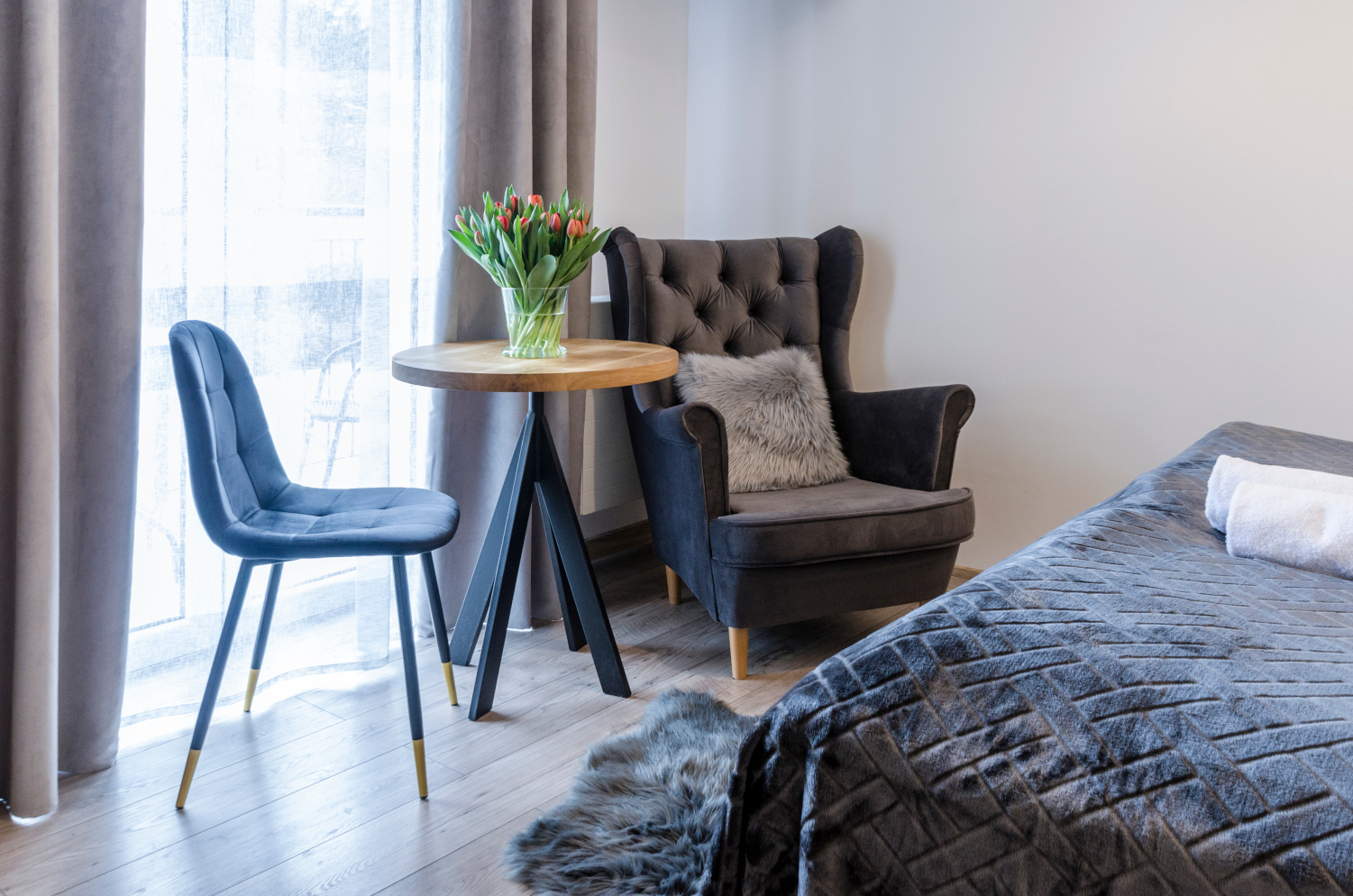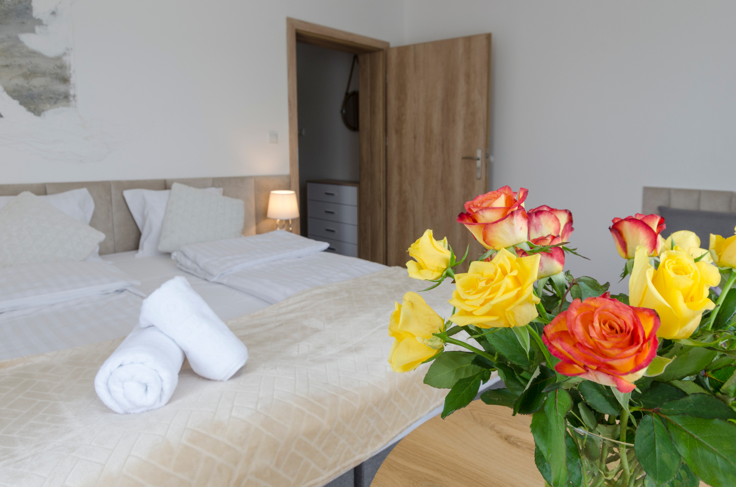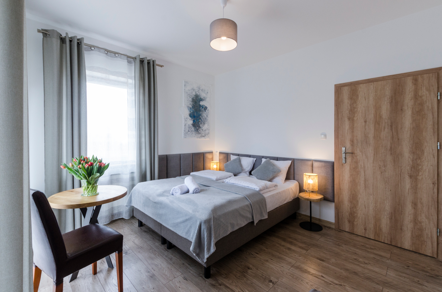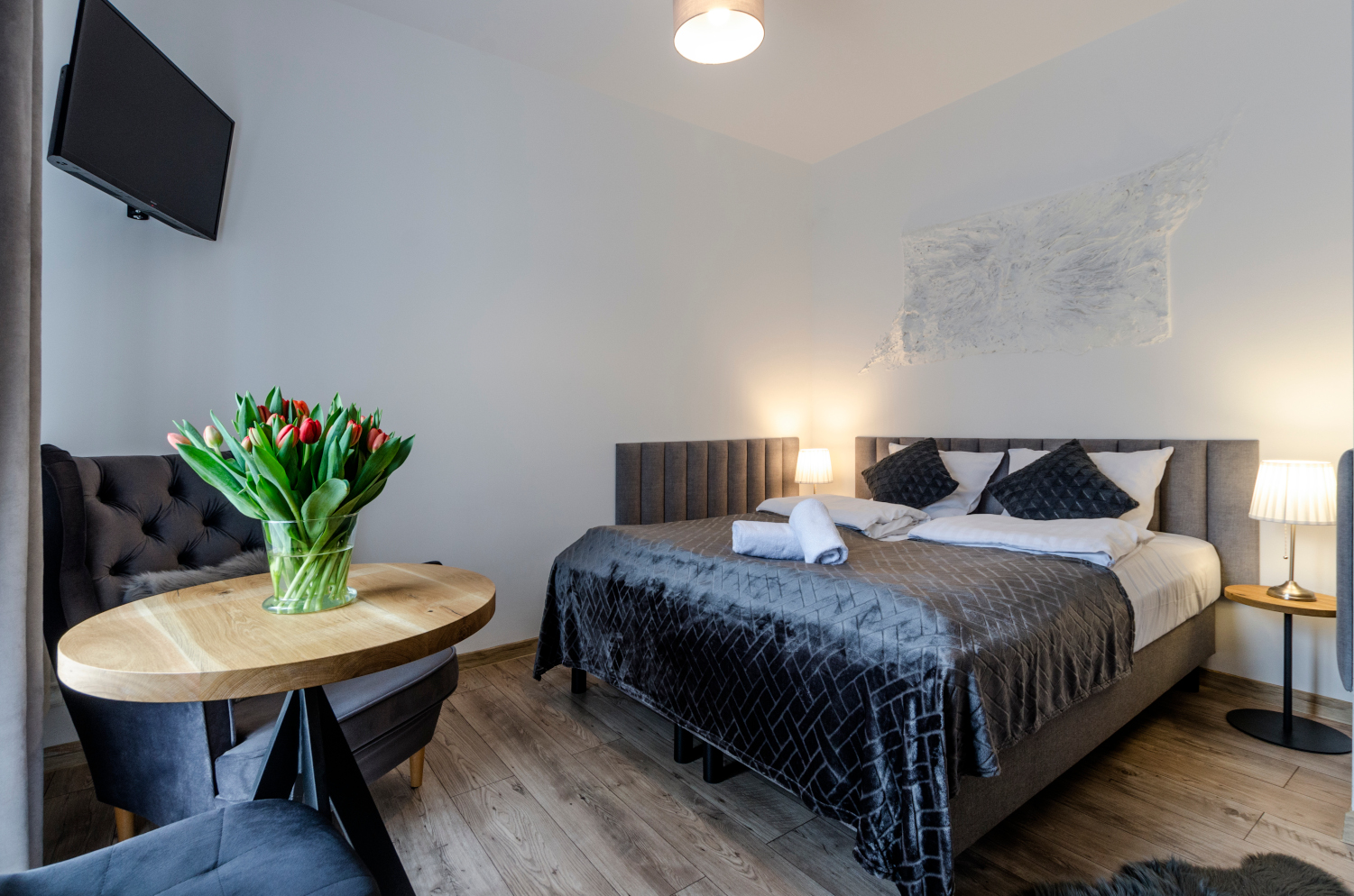 Komfortowy pokój 2 osobowy z balkonem i widokami na panoramę Karkonoszy. W pokoju znajdują się dwa łóżka, które można ustawić razem albo osobno. Wielkość pokoju jest idealna dla pary.